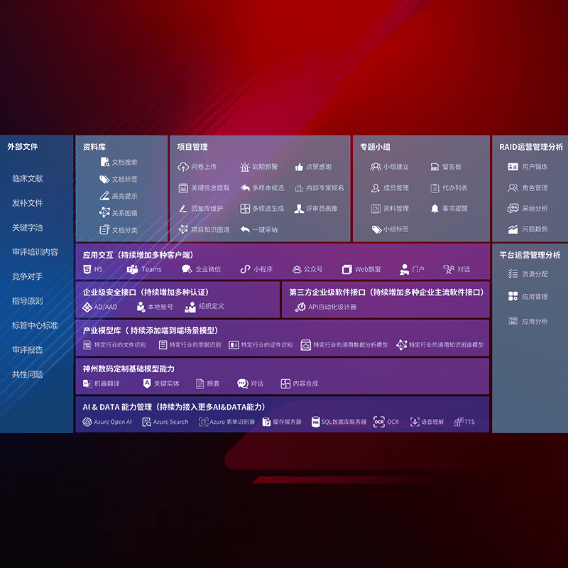 医疗器械产品上市前,,,,要熟悉严格与繁复评审标准,,,,整理分析监管机构指导文件中的海量信息。。。企业急需一个智能化解决方案,,提升知识管理效率,,,提高评审通过率,,,,以提升其市场竞争力。。。